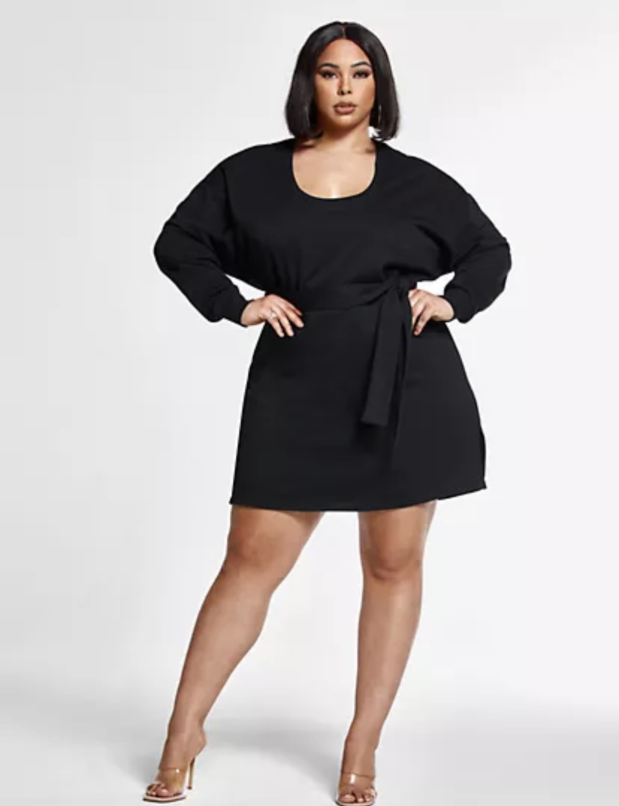 Fashion ot Figure just continues to be that girl (on a side note they also have those Nadia thick thigh high boots which I am obsessed with you should check out here)! I think it’s definitely still appropriate to wear satin before it gets too hot! This satin shirt and pants co-ord is giving me pajamas but making it extremely fashionable. Not to mention these pants are joggers and provide so much versatility to a closet (and honestly joggers have been a saving grace this panoramic). And a sweatshirt dress?!?!?!? That’s all I have to say on that, you’re welcome.